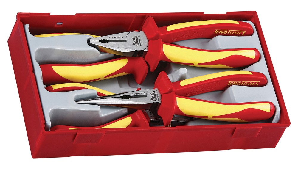 Set combinato di giraviti VDE a taglio, a croce e pozidriv Linea Plus Line - 7 pezzi 3 giraviti ad intaglio mm 2.5x75, 4x100, 5.5x125 3 giraviti a croce Phillips PH 0x60, 1x80, 2x100 1 giravite a croce Pozidriv PZ 2x100 Isolati a 1000 V Conformi alle norme EN60900 Punta fosfatizzata Impugnatura ergonomica in bicomponente Codici e simboli identificativi riportati sull'estremità del manico Fornito in contenitore di plastica dura (ABS) sagomato internamente per il posizionamento degli utensili adattabile a tutte le cassettiere ed i carrelli porta utensili Teng Tools Utilizzabile come singolo assortimento oppure combinabile con le altre cassette della linea TC TRAYS per creare il proprio assortimento personalizzato Tutti gli utensili isolati TengTools hanno le seguenti caratteristiche: Proprietà isolanti fino a 1000 Volt in condizioni ambientali secche o umide Resistenza al freddo Isolamento elettrico delle parti che non si sono staccate dal corpo dell'utensile Resistenza al calore Isolamento elettrico anche quando l'utensile è sottoposto a pressioni estreme di utilizzo Certificazione IEC 60 900 - DIN 60 900 - VDE 0680