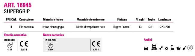 | 16-945 | Dita Areate Polso Elasticizzato Grip Eccezzionale in Ambienti Unti, Umidi e Oleosi |