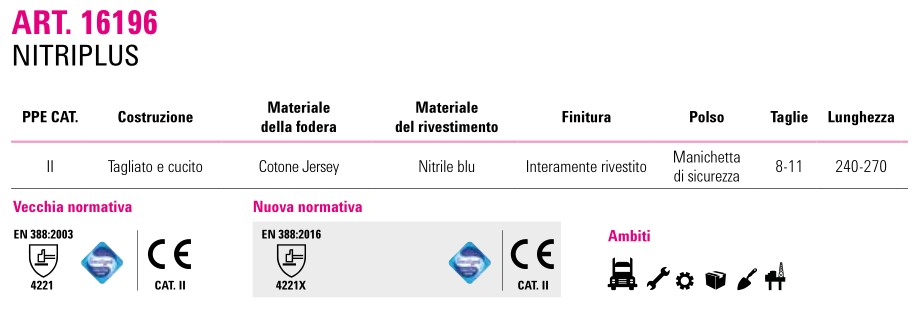 | 16-196 | Dorso Areato Manichetta Repellente Olii e Grassi |