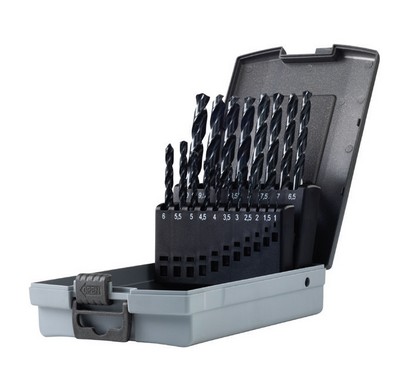 Assortimento di punte per ferro professionali in cassetta di ABS antiurto Composto da 19 punte da Ø 1 mm a Ø 10 mm con progressione 0.5 mm Linea Krino Industrial Punte elicoidali in acciaio super rapido al cobalto 5% HSS-Co 5% Esecuzione interamente rettificata DIN 338 Affilatura Split Point Codolo cilindrico Adatte per uso con trapani, macchine convenzionali e torni automatici Ideali per la foratura di acciai INOX, acciai legati e non legati e tutti i materiali metallici con durezza fino a 1200 N/mm2 Punte con ottima resistenza alle sollecitazioni termiche, adatte per forare acciai legati e non con R sino a 1200 N/mm2, in modo particolare acciai da bonifica, acciai per lavorazioni a caldo e a freddo, acciai inossidabili, ghisa, ...