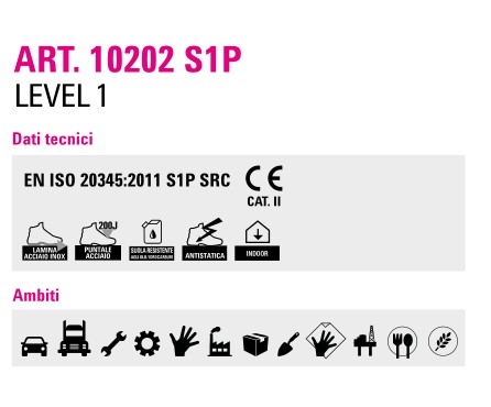 Calzatura antinfortunistica in pelle stampata adeguata alle nuove norme di sicurezza e rivista nel design, nella qualità e nel comfort offerta ad un prezzo altamante competitivo Tomaia: pelle pigmentata Fodera: air mesh traspirante Intersuola: in poliuretano espanso Puntale in acciaio resistente 200 J Lamina antiperforazione in acciaio inox Suola in poliuretano compatto resistente a olii e acidi Scarpa antistatica Colore: Nero Peso: 1306 grammi/paio per la taglia 42 Calzata: 10.5 Mondopoint Taglie dalla 37 alla 47 (le taglie non disponibili sono fornibili a richiesta) EN ISO 20345:2011 S1P SRC CE CAT II Articolo Tipo Colore 10102 Normativa S1P SRC Economiche Alte Nero