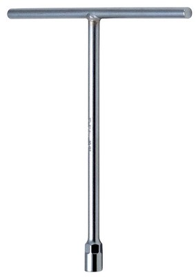Chiave a bussola professionale con impugnatura di manovra a "T" Misura in pollici Realizzata in acciaio al cromo-vanadio Finitura cromata satinata opaca Bussola con profilo esagonale Dimensione chiave 5/8" Lunghezza impugnatura di manovra mm 300 Lunghezza totale mm 350 Articolo Misura Pollici D mm L mm L1 mm L2 mm Peso Gr 104A-5/8" 5/8" 22.5 21 350 300 528