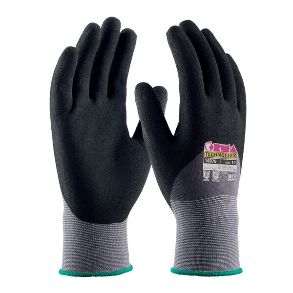 Guanto traspirante che incorpora micropunti in rilievo che ne esaltano le proprietà di presa in applicazioni ripetitive e di precisione, aumentandone la resistenza all’abrasione e garantendo una durata notevolmente superiore ai guanti della stessa categoria Le innovative forme utilizzate simulando la mano a riposo riducono l’affaticamento e consentono la perfetta aderenza alla mano aumentandone la sensibilità tattile La colorazione grigia rende meno evidente lo sporco, contribuendo a prolungare l’uso del guanto Consigliato per utilizzo nei settori: automobilistico, trasporti, meccanico, manutenzione, manifattura, industria, logistica e magazzino ed edilizia Supporto in nylon-Spandex elasticizzato Supporto in maglia senza cuciture (filo continuo) Rivestimento in nitrile microporoso traspirante Palmo puntinato per un’alta resistenza all’usura ed un grip inimitabile Silicon free Dita areate Polso elasticizzato Colore: Grigio/Nero Taglie 7, 8, 9 e 10 Confezionamento: pacchetto da 12 paia CE Cat II - EN 388:2016 4131X - EN 407:2004 X1XXXX A richiesta fornibili anche le taglie 6, 8 e 11 Articolo Tipo Colore 16-844 Dita Areate Polso Elasticizzato Palmo Puntinato Grigio/Nero