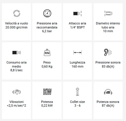 Vai al carrelloMini smerigliatrice diritta ad aria compressa Airtec 250