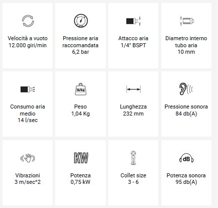 Vai al carrelloSmerigliatrice diritta ad aria compressa 1 HP Airtec 260