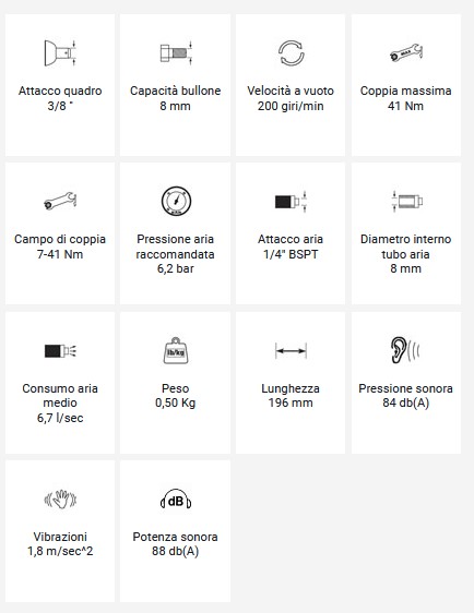 | Pressione aria | 6,2 bar |