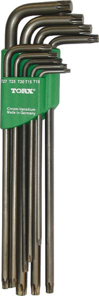 Assortimento di 9 chiavi a brugola torx da Tx 8 a Tx 40 Brunite In acciaio al Cromo Vanadio Fornite in supporto di plastica pieghevole Misure: TX 8, 9, 10, 15, 20, 25, 27, 30, 40