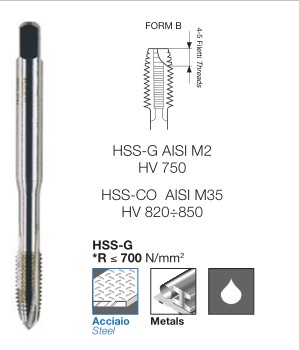 Vai al carrelloMaschio a macchina a passo grosso M 4x0.7 elica 15° Damm 760/3C