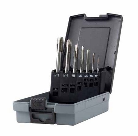 Serie di maschi a macchina M 3-12 + punte di preforo in acciaio super rapido HSS-G FILETTATURA METRICA A PASSO GROSSO M 14 pezzi Composto da 7 maschi a macchina con scanalature dritte per fori passanti M 3, 4, 5, 6, 8, 10, 12 + 7 punte per prefori di maschiatura Ø 2.5, 3.3, 4.2, 5, 6.8, 8.5, 10.2 mm Imbocco corretto DIN 371/B DIN 376/B ISO 2/6H Gambo rinforzato Per fori passanti in acciai con R≤700 N/mm2, ghisa, metalli non ferrosi a truciolo lungo Punte in HSS-G con gambo cilindrico Linea Krino Industrial Astuccio in ABS antiurto