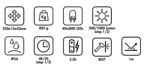 Lampada led ricaricabile magnetica con corpo ultra sottile Testa pieghevole a 270° 8 SMD LED ad alta luminosità Due livelli di luminosità (125 - 250 lumen) + Spot Light (50 lumen) Caricatore e cavo USB in dotazione Corpo ergonomico in materiale antiscivolo Autonomia fino a 4 ore IP 20 Qualità, affidabilità e design curato in ogni minimo dettaglio Certificata e marcata secondo la normativa CE Lighted by SCANGRIP Dimensioni mm 248x40x32 Peso gr 136