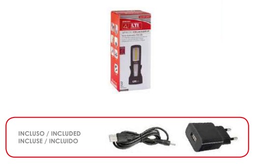 Lampada da ispezione led ricaricabile magnetica COB LED ad alta luminosità Design sottile per illuminare gli spazi più inaccessibili Tre livelli di luminosità: 500 lumen - 170 lumen + torcia 100 lumen Cavo USB per ricarica in dotazione Totalmente richiudibile Rotante a 270° Dotata di magnete sotto la base e gancio superiore Autonomia: 3 ore (500 lumen) - 10 ore (170 lumen) Resistenza agli urti IK07 Impermeabilità IP 44 Qualità, affidabilità e design curato in ogni minimo dettaglio Certificata e marcata secondo la normativa CE