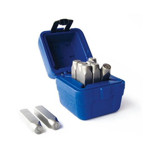 Punzoni microstress puntinati in acciaio speciale temprato per marcatura manuale a battere Tipo destro Stelo quadro Spigoli arrotondati Satinati Durezza HRC 60±2 Per punzonare metalli a bassa e ad alta resistenza La puntinatura permette una lettura più chiara nei metalli morbidi, evitando la deformazione del materiale Nei metalli più duri diminuisce il pericolo di scheggiature Confezionati in scatola in serie da 27 pezzi Lettere A-Z Altezza carattere mm 5 - 3/16" Lato punzone mm 8 Lunghezza punzone mm 66