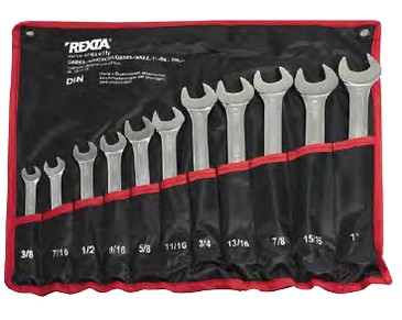 Assortimento di 25 chiavi combinate professionali con misure in pollici In acciaio al cromo vanadio Forgiate a freddo Finitura satinata cromata In custodia di tetron richiudibile con fori per fissaggio a muro Composizione: 25 chiavi combinate in pollici dimensione 1/4”, 9/32”, 5/16”, 11/32”, 3/8”, 7/16”, 15/32”, 1/2”, 9/16”, 19/32”, 5/8”, 11/16”, 23/32”, 3/4”, 25/32”, 13/16”, 7/8”, 29/32”, 15/16”, 1”, 1"1/32, 1"1/16, 1"1/8, 1" 3/16, 1"1/4 Peso 5,486 Kg