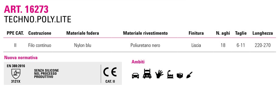 | 16-273 | Dita Areate Polso Elasticizzato Leggerissimo |