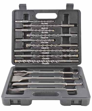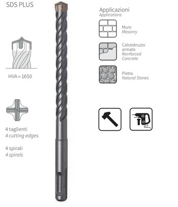 Assortimento di punte per edilizia con attacco Sds-Plus Krino Hammer In cassetta di ABS antiurto Composto da 7 punte Ø 5x115, 6x115, 8x115, 6x165, 8x165, 10x165, 12x165 mm Punte per muro HVA 1650 4 taglienti e 4 eliche Placchetta integrale a 4 taglienti in metallo duro resistente alla forte percussione, saldata al corpo per diffusione elettronica La saldatura per diffusione elettronica è 3 volte più resistente della saldobrasatura Corpo fresato con scanalatura a “L” ad alta evacuazione La speciale testa dell’utensile è saldata al corpo per diffusione: questa nuova tecnologia garantisce un legame estremamente stabile tra placchetta in metallo duro e corpo della punta, perché la giunzione avviene allo stato solido per diffusione degli atomi del reticolo cristallino all’interfaccia tra i due pezzi La placchetta in metallo duro monoblocco a 4 taglienti garantisce una grande capacità di taglio, una perfetta trasmissione della potenza e un’ottima asportazione dei detriti grazie alla combinazione dei 4 taglienti, della placchetta integrale e delle 4 eliche La punta a 4 taglienti e 4 spirali taglia sempre e senza problemi il tondino nel cemento armato e garantisce un grande rendimento di taglio in tutti i materiali edili, cemento, granito, cemento armato, pietre in genere, mattoni Grande precisione di foratura, grande durata della vita dell’utensile, massima limitazione delle vibrazioni del martello Idonee per un uso intensivo ad alto rendimento