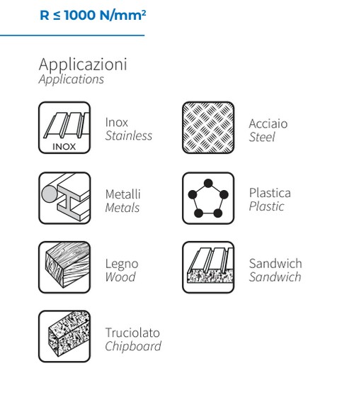 Assortimento di frese perforatrici a tazza professionali in cassetta di ABS antiurto Composto da 8 frese Ø mm 16, 18, 20, 22, 25, 30, 32, 35 Linea Krino Professional Frese perforatrici a tazza in HSS-G interamente rettificate per forare lamiere in acciaio, ferro, leghe leggere, tutti materiali metallici e plastica dura Innovativo disegno dei denti e taglio laterale: migliore scarico dei trucioli con grande rendimento del taglio R ≤ 800 N/mm2 HRC = 64 Dentatura ricavata interamente di rettifica Taglio laterale rompitruciolo Molla di espulsione del dischetto Profondità di foratura sino a 5 mm Grande rendimento, precisione di foratura nel taglio anche profondo di tutte le lamiere in acciaio, leghe leggere, materiali metallici in genere Riaffilabili