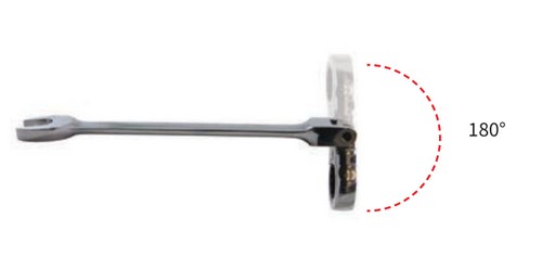 Chiave combinata professionale con cricchetto Cricchetto da 72 denti ad alta resistenza Cricchetto snodato ruotabile a 180° Realizzate in acciaio al cromo-vanadio Finitura a specchio Dimensione chiave mm 12 Lunghezza chiave mm 174 Articolo Misura Mm Lunghezza mm 65210035 12 174