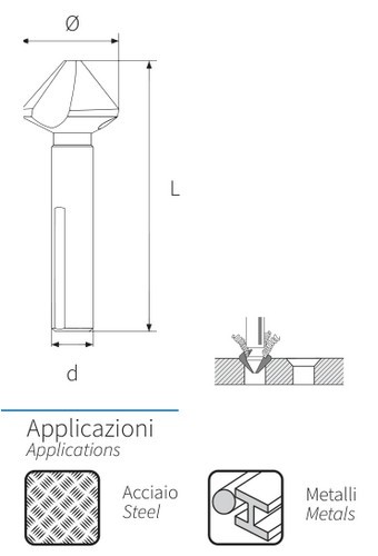 Svasatore in acciaio super rapido HSS Tipo a 3 taglienti rettificati Per svasare fori nel ferro, acciaio, leghe leggere e leghe non ferrose Conicità testa a 90°. Attacco esagonale 1/4 Indicato per uso con avvitatori elettrici e a batteria Diametro max svasatore mm 20.5 Lunghezza totale mm 48 Peso 0,023 kg