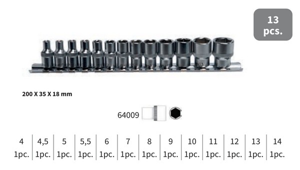 Vai al carrelloSerie bussole esagonali 1/4" lunghe - 13 pz - Lti 64010201
