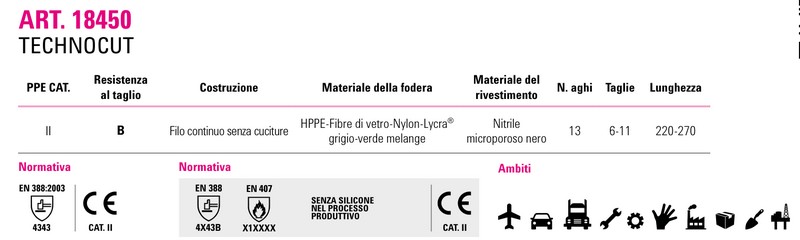 | 18-450 | Dita areate Polso Elasticizzato Resistenza taglio 3 (B) |