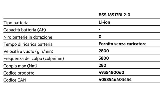 Avvitatore ad impulsi a batteria ad alte prestazioni della famiglia AEG PRO18V Compatibile con tutte le batterie e i caricabatteria della serie Motore senza spazzole Brushless più compatto e con fino al 50% di autonomia in più rispetto al motore con le spazzole tradizionale Avvitatore a media coppia compatto e ben bilanciato Batteria al litio 18V 4Ah Potente motore brushless in grado di erogare fino a 785 Nm di coppia Rapporto eccezionale potenza-dimensioni: solo 180 mm di lunghezza totale Attacco 1/2 ̋ quadro con anello di frizione Fornisce da 0 fino a 3800 impatti al minuto per la massima produttività Motore con 4 modalità, 3 velocità più una quarta modalità chiamata “Auto Stop Mode” dove l’utensile si ferma da solo a lavoro ultimato Alimentazione tramite batteria PRO Lithium Ion con tripla protezione, per la massima durata sia dell’utensile che della batteria Rivoluzionario sistema a batteria agli ioni di litio PRO18V La tecnologia AEG Lithium-Ion garantisce la massima protezione dell'utensile e della batteria grazie all'impiego di tre innovativi sistemi di protezione: monitoraggio cella, protezione elettronica e protezione termica Fornito in valigetta completo di 2 batterie 18V 4.0 Ah e caricabatterie Scheda completa