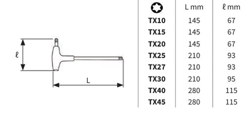 Vai al carrelloSerie chiavi a T con maschio torx TX 10-40 Lti 65101125