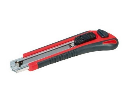 Taglierino professionale con robusto corpo in metallo Finitura ad alta resistenza Corpo in zinco pressofuso Lama a spezzare da 18 mm Impugnatura ergonomica rivestita in gomma antiscivolo Lunghezza mm 160 Peso gr 158