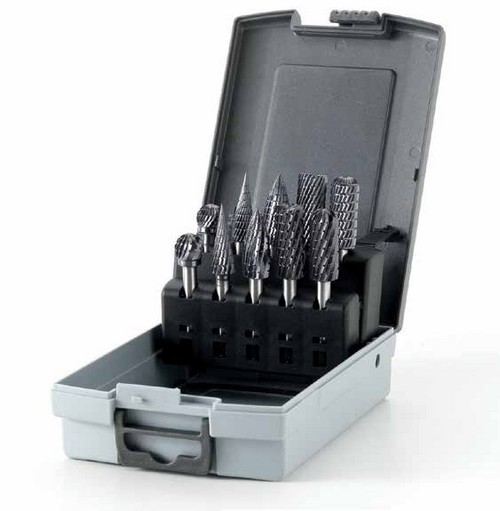 Vai al carrelloAssortimento 5 frese rotative in Metallo Duro mm 10 taglio incrociato Krino 26030404
