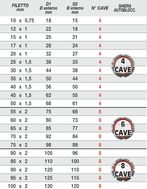 Chiave di serraggio per ghiere autobloccanti con anello di nylon incorporato In acciaio speciale bonificato Denti esterni Versione a tubo per utilizzo a mano Per ghiere autobloccanti con filetto mm 10x0.75, diametro esterno mm 18 e diametro interno mm 15 Per ghiere con 4 cave Su richiesta sono fornibili tutte le chiavi per ghiere a catalogo Fermec