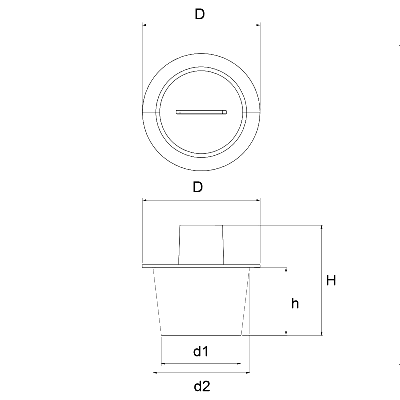 Tappi in plastica per tubi tondi e inserti a lamelle per profilati a forma rotonda Utilizzo estetico per arredo urbano o mobili metallici In polietilene a bassa densità LDPE, in materiale stampato Ideali come chiusura terminale di protezione per estremità di profilati e per tubi Colore: Nero Diametro D: 55 mm Altezza H: 14,5 mm Altezza testa h: 5 mm Spessore tubo minimo: 1 mm Spessore tubo massimo: 3 mm Forniti in confezioni da 100 pezzi
