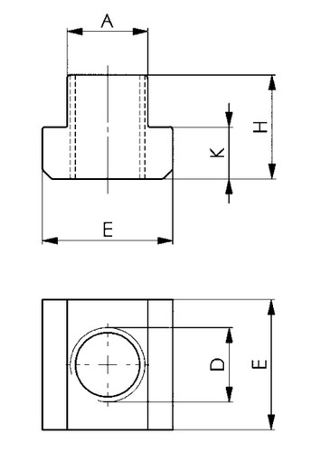 Dadi da staffaggio per cave a T In acciaio classe 8.8 DIN 508 - UNI 5531 Filettatura M6 Cava 8 Confezionati in sacchetti da 50 pezzi Articolo S360.06008 M 6 D 7,7 mm A 13 x 13 mm B 10 mm C 6 mm Cava 8 Peso 9 gr