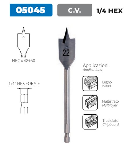 Set di punte per legno ad alto rendimento In valigetta in ABS leggera e pratica Composto da 6 pezzi Composto da 6 punte Ø 16, 18, 20, 22, 25, 32 Lunghezza totale punte mm 165 Lunghezza utile punte mm 65 Attacco esagonale 1/4" (mm 6,3) per avvitatori Rapida evacuazione del truciolo Testa a 4 taglienti In acciaio al Cromo Vanadio Ideali per forare a grande rendimento il legno e i suoi derivati (multistrato, truciolato, ...)